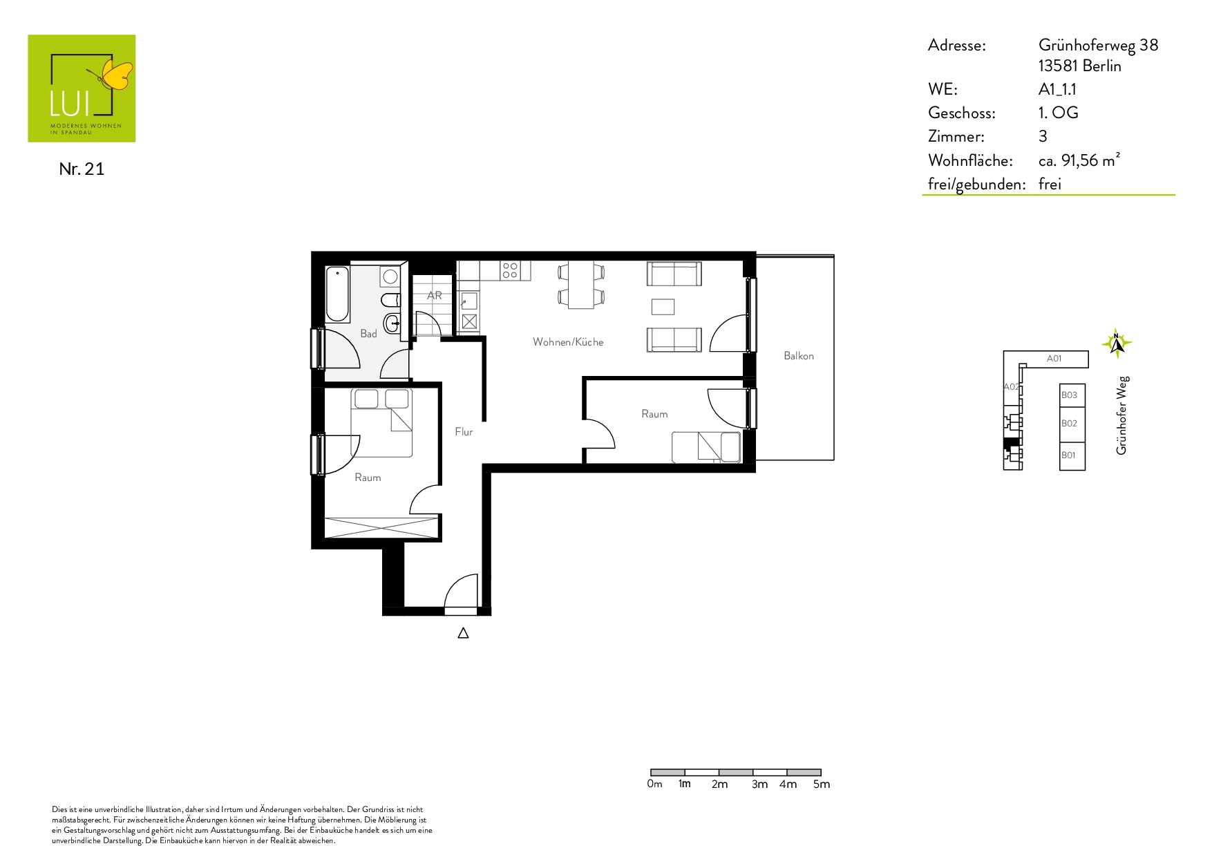 Diese Anzeige dient nur der ersten Information und stellt kein Vertragsangebot dar. Die Anzeige begründet keine vertraglichen Ansprüche. Der Inhalt und die Angaben wurden nach bestem Wissen und Gewissen ermittelt. Für Richtigkeit und Vollständigkeit wird keine Haftung übernommen. Die Grundrisse sind nicht zur Maßentnahme geeignet. Bei den Flächenangaben handelt es sich um Planmaße. Die Wohnung wird nicht möbliert vermietet.