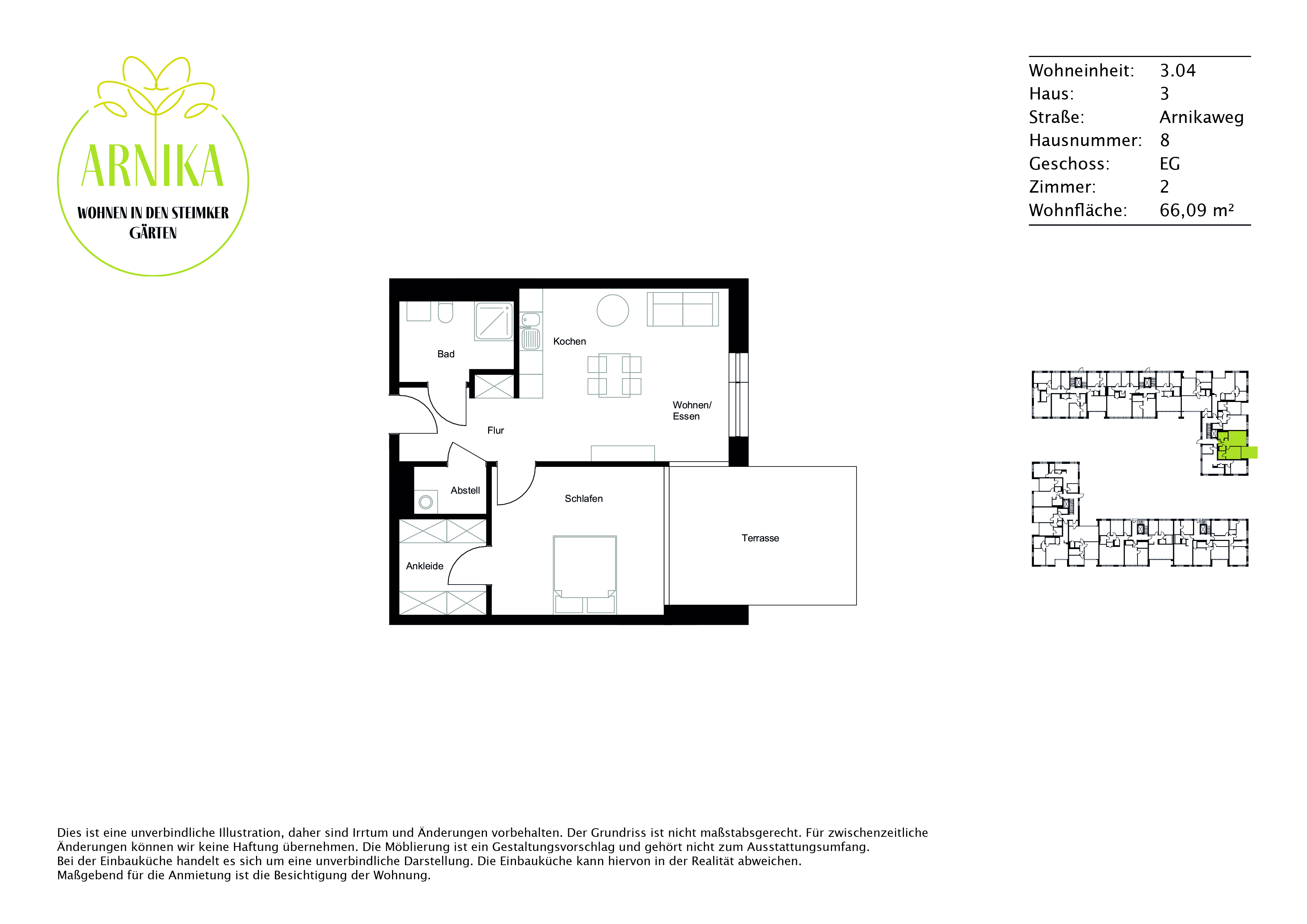 Das Wohnprojekt ARNIKA befindet sich im Herzen des neuen Stadtquartiers Steimker Gärten, welches durch seine idyllische Lage im Grünen und gleichzeitige Nähe zur urbanen Infrastruktur besticht. Die offenen, hellen Räume und großzügigen Grundrisse des 5-geschossigen Gebäudes versprechen ein zeitgemäßes Wohnvergnügen auf höchstem Niveau. Das Areal verfügt über einen grünen Innenhof sowie eine ressourcensparende Stromversorgung.