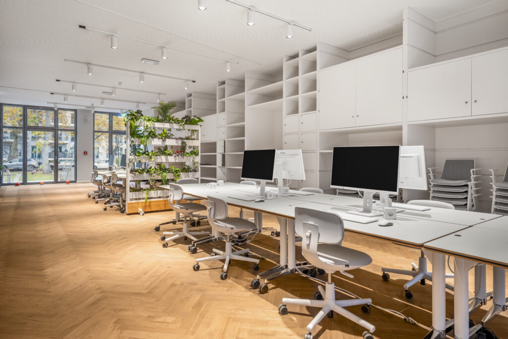 Das Quartier bietet zahlreiche Highlights: Co-Working-Spaces, Fitness, Yoga, Boulderhalle und Mini-Kino – alles bequem per App buchbar.