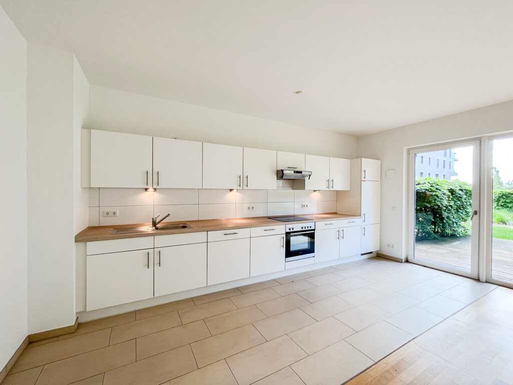 Bei der angebotenen Wohnung handelt es sich um eine 3-Zimmer-Wohnung im Erdgeschoss. Beim Betreten der Wohnung gelangt man in einen kleinen Dielenbereich, welcher ins geräumige Wohnzimmer mit offener Küche und Zugang zur Terrasse führt. Ein vom Wohnzimmer ausgehender Flur erschließt die beiden Schlafzimmer, ein innenliegendes Gäste-Bad und ein Bad mit Badewanne. Zusätzlich verfügt die Wohnung über einen Abstellraum mit WMA. Weiterhin kann ein Tiefgaragenstellplatz angemietet werden. Zudem bietet ein Kellerraum weitere Staufläche.