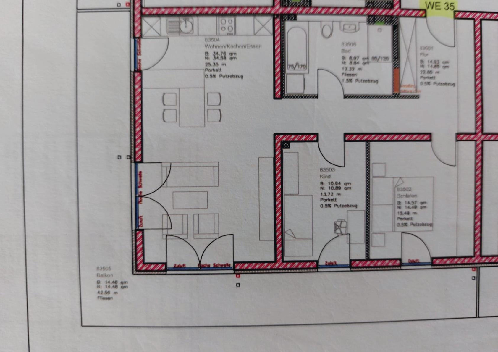 Die hier angebotene 3-Zimmer-Wohnung verfügt über einen Wohn/- und Essbereich mit offener Küche (ohne EBK), ein Schlafzimmer, ein Kinderzimmer, ein Bad (mit WMA) sowie einen großzügigen Balkon.