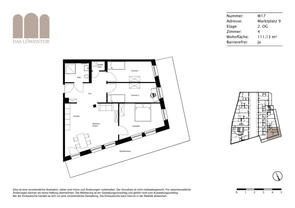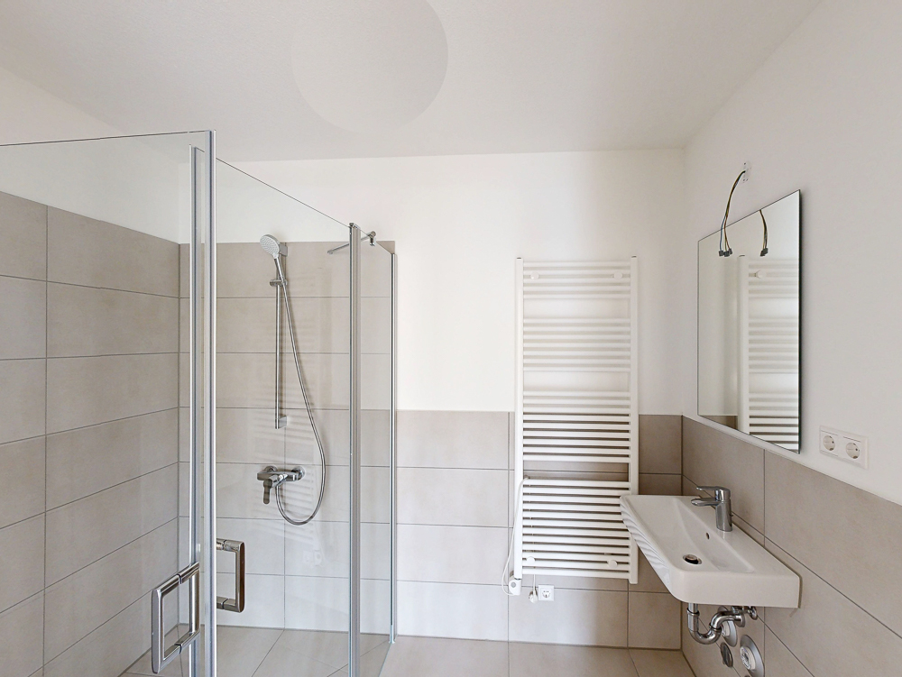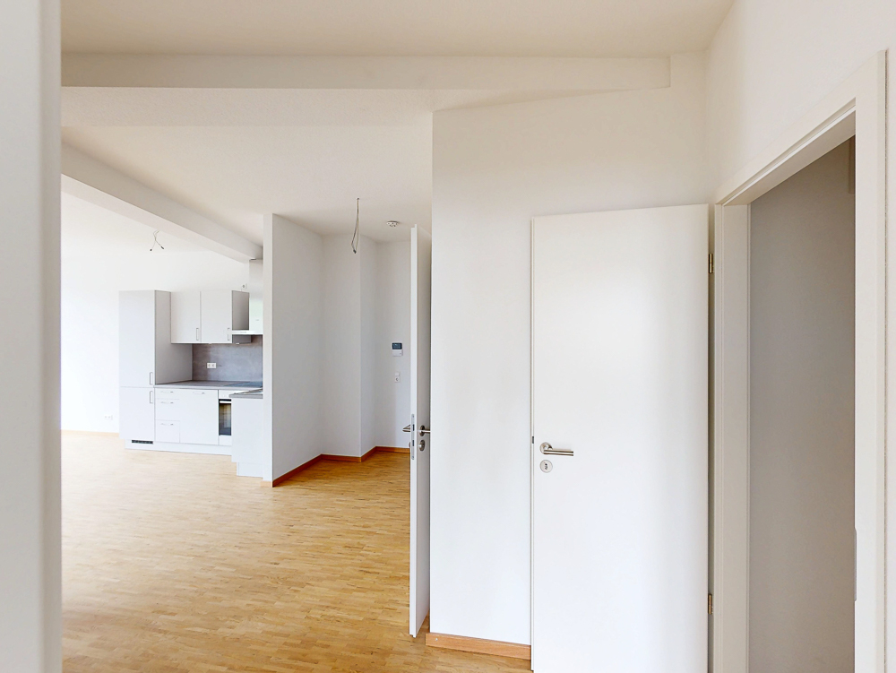 Die angebotene 4-Zimmerwohnung verfügt über einen geräumigen Flurbereich von welchem das moderne Duschbad, der Abstellraum sowie zwei von drei Schlafzimmern erreichbar sind. Mit einem offenen Wanddurchbruch schließt sich der großzügige nach Süden ausgerichtete Wohnbereich an, welcher mit einer Einbauküche ausgestattet ist und den Zugang zum Balkon/zur Dachterrasse ermöglicht. Das dritte Schlafzimmer erreicht man über das Wohnzimmer.