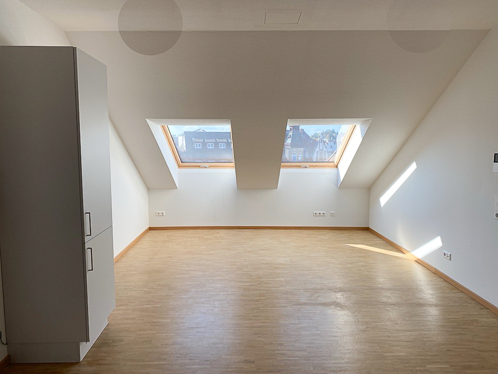 Die angebotene 4-Zimmerwohnung verfügt über einen geräumigen Flurbereich von welchem das moderne Duschbad, der Abstellraum sowie zwei von drei Schlafzimmern erreichbar sind. Mit einem offenen Wanddurchbruch schließt sich der großzügige nach Süden ausgerichtete Wohnbereich an, welcher mit einer Einbauküche ausgestattet ist und den Zugang zum Balkon/zur Dachterrasse ermöglicht. Das dritte Schlafzimmer erreicht man über das Wohnzimmer.