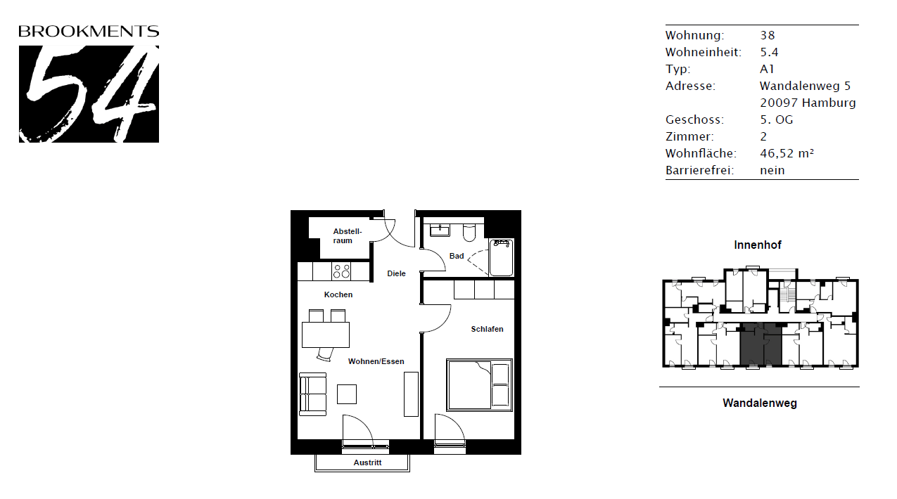 Auf einer Grundstücksfläche von ca. 850 m² befindet sich entlang des Wandalenwegs ein siebengeschossiges Neubauobjekt mit 54 City-Apartments, die über eine Wohnfläche von insgesamt ca. 2.600 m² verfügen.