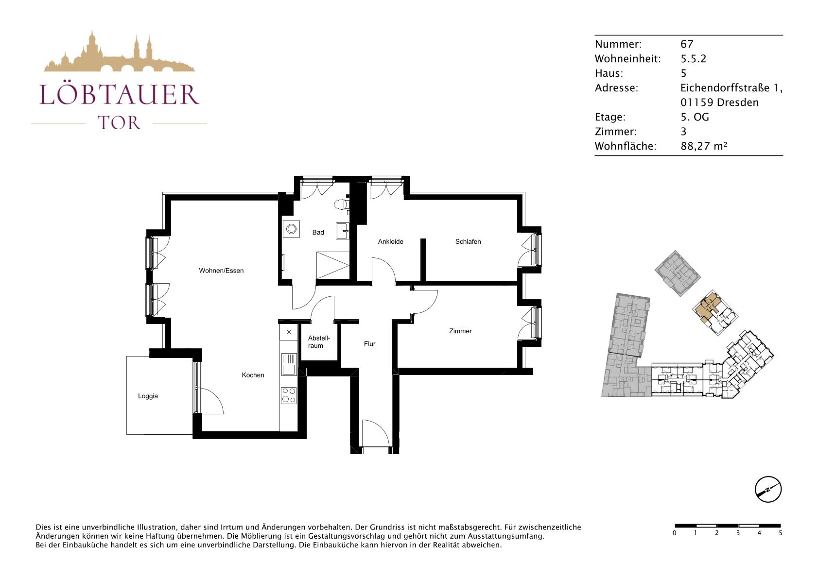 Der Neubau liegt in attraktiver Wohnlage an der Eichendorffstraße / Löbtauer Straße im beliebten Stadtteil Löbtau-Nord in Dresden. Die Umgebung verbindet urbanes Leben mit grünen Rückzugsorten und bietet eine schnelle Anbindung in die Innenstadt.