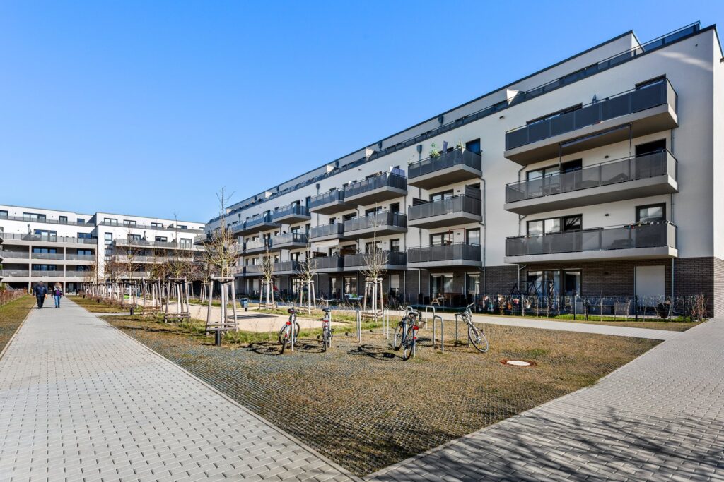 In schlicht zurückgenommener, ansprechend moderner Architektur stehen im LUI insgesamt 167 Mietwohnungen - davon 32 gefördert - zur Anmietung bereit. Das Ensemble besteht aus einem L- sowie einem I-förmigen Gebäudeteil mit jeweils vier Vollgeschossen sowie einem Staffelgeschoss. Zusammen ergeben sie eine U-förmige Wohnanlage mit einem weitläufigen, sorgfältig begrünten Innenhof. Hier machen Spielen und Verweilen Spaß!