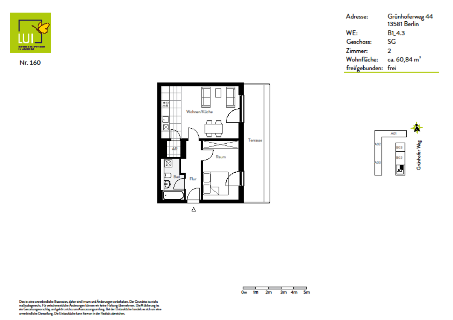 In schlicht zurückgenommener, ansprechend moderner Architektur stehen im LUI insgesamt 167 Mietwohnungen - davon 32 gefördert - zur Anmietung bereit. Das Ensemble besteht aus einem L- sowie einem I-förmigen Gebäudeteil mit jeweils vier Vollgeschossen sowie einem Staffelgeschoss. Zusammen ergeben sie eine U-förmige Wohnanlage mit einem weitläufigen, sorgfältig begrünten Innenhof. Hier machen Spielen und Verweilen Spaß!