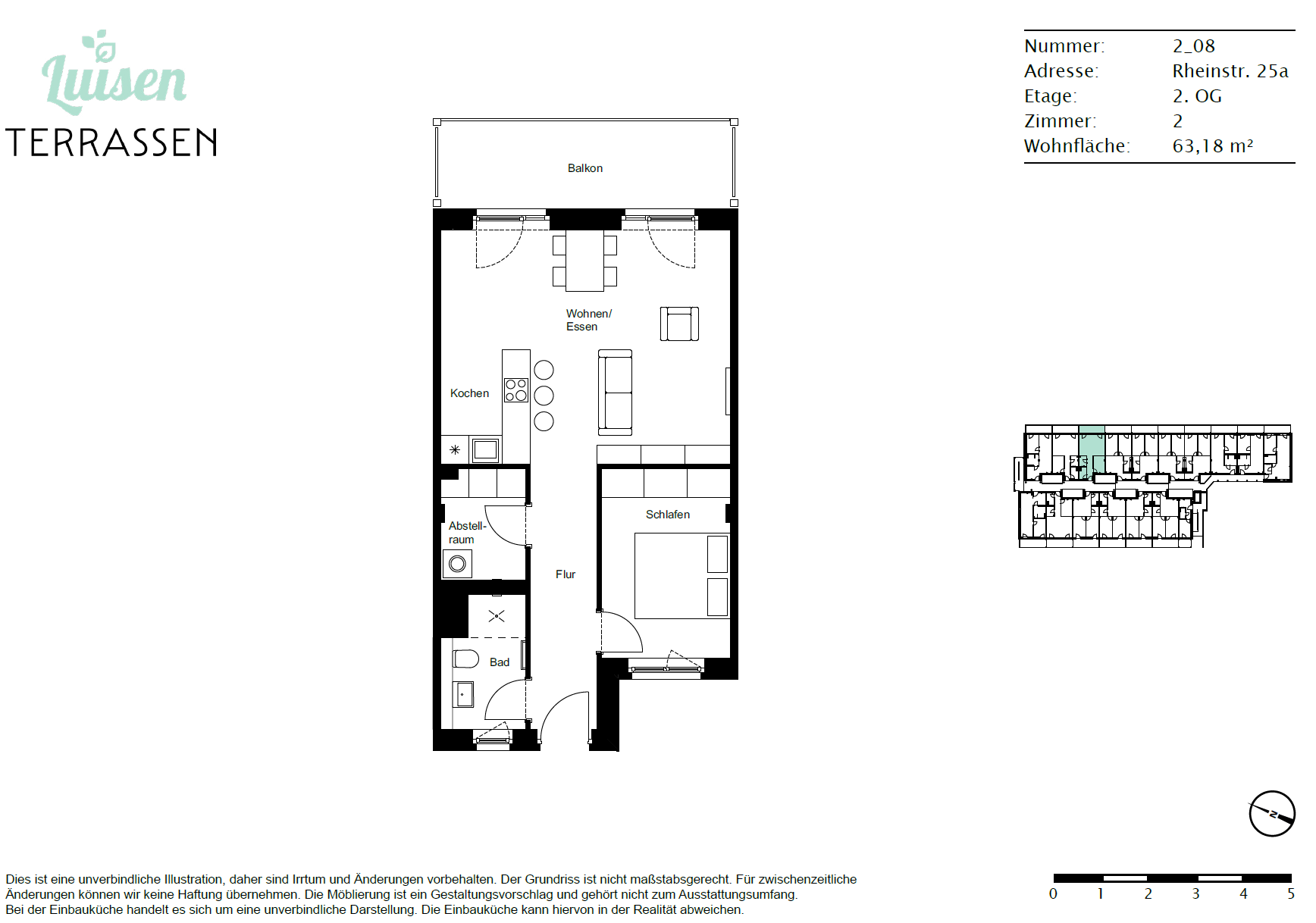 Diese attraktive 2-Zimmer-Beispiel-Wohnung überzeugt mit einer klugen Raumaufteilung und lichtdurchflutetem Wohnbereich. Das offene Wohn- und Esszimmer mit direktem Zugang zum Balkon bildet das Herzstück der Wohnung – ideal zum Entspannen, Kochen oder Gästeempfang. Ein geräumiges Schlafzimmer, ein modernes Bad mit bodengleicher Dusche sowie ein praktischer Abstellraum mit Waschmaschinenanschluss bieten Komfort auf ganzer Linie. Diese Wohnung eignet sich ideal für Paare oder Singles, die urbanes Wohnen mit hoher Lebensqualität verbinden möchten.