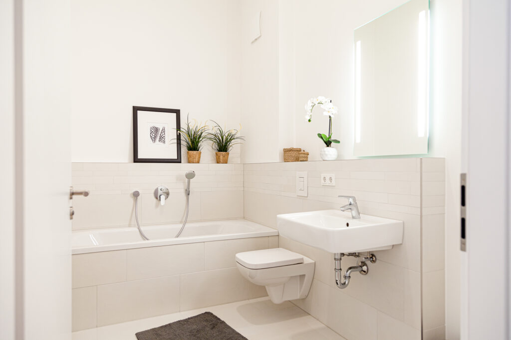 Bilder einer Musterwohnung im gleichen Objekt. Der Zuschnitt der angebotenen Wohnung
