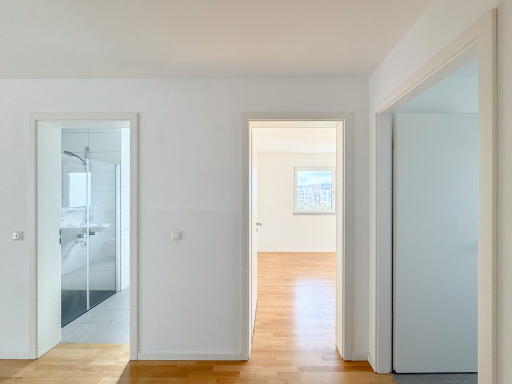 Diese toll geschnittene Wohnung verfügt über einen offenen Wohnbereich mit großzügigen Flächen zum Kochen, Essen und Entspannen. Weiterhin bietet die 3-Zimmer Wohnung zwei gemütliche Schlafzimmer und ein modernes Badezimmer mit ebenerdiger Dusche und Badewanne sowie ein Gäste-WC. Ein Highlight ist ebenso die schöne Südloggia, welche man vom Wohnbereich aus erreicht.
