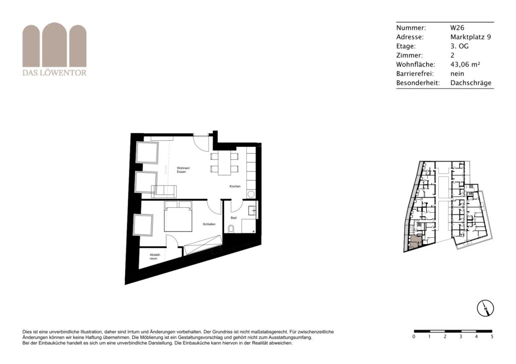 Direkt am Markplatz von Emmendingen gelegen, bietet das LÖWENTOR modernes Wohnen in verkehrsberuhigter Innenstadtlage und eine Nahversorgung mit kurzen Wegen. Rund um den Marktplatz sorgen zwei Optiker, zwei Arztpraxen, ein Kiosk, eine Apotheke, ein Restaurant mit Freisitz, eine Metzgerei, und verschiedenste Ladengeschäfte für Leben in der City. Ein REWE Supermarkt, eine Bäckerei und ein Kindergarten liegen im näheren Umkreis zwischen 120 und 300 Metern. Die Bushaltestelle Marktplatz ist 50 Meter entfernt, der Bahnhof Emmendingen ist nach fünf Minuten zu Fuß erreicht.