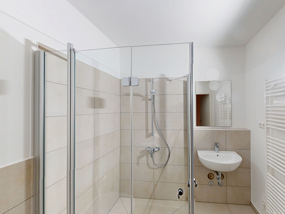 Die lichtdurchflutete 2-Zimmer-Wohnung präsentiert sich mit einer Dachschräge und großen Dachflächenfenstern. Sie verfügt über eine vollausgestattete Einbauküche sowie über ein modernes Duschbad. Das geräumige Schlafzimmer und der Abstellraum runden das Wohnkonzept ab.