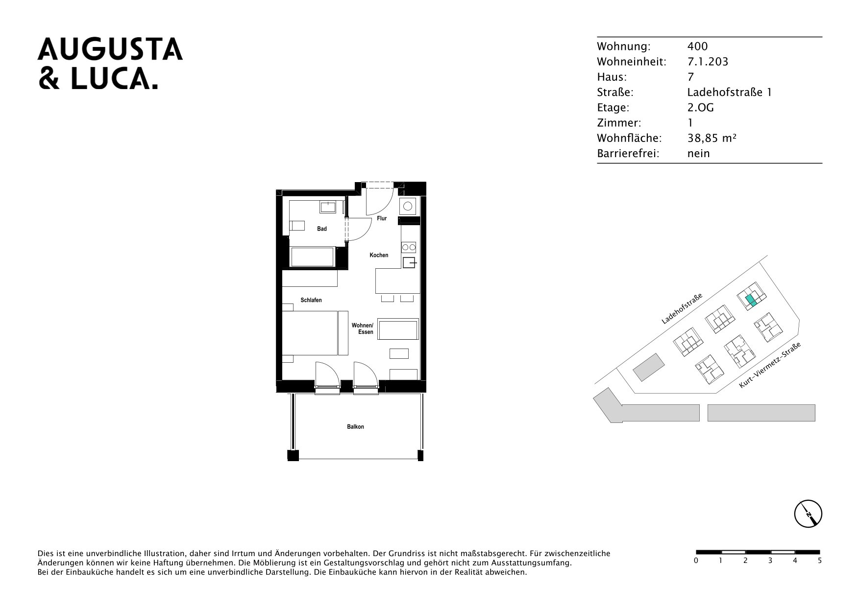 Auf dem Areal des ehemaligen Ladebahnhofs befindet sich das moderne Wohnquartier AUGUSTA & LUCA mit insgesamt 429 Wohnungen und einer Gesamtwohnfläche von 19.000m². Auf dem Baufeld LUCA wurden sechs Wohngebäude als viergeschossige Stadtvillen in Massivbauweise errichtet, die eine gemeinsame Tiefgarage verbindet. Neben den Pkw-Stellplätzen sind in den Untergeschossen auch die Technik- und Müllräume sowie die Kellerabteile und Fahrradstellplätze untergebracht. Die insgesamt 120 Wohnungen verfügen über 1 bis 3 Zimmer und haben Wohnflächen von 38m² bis 82m².