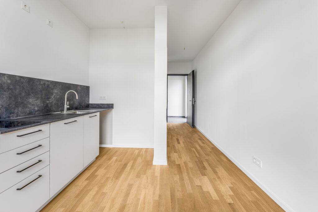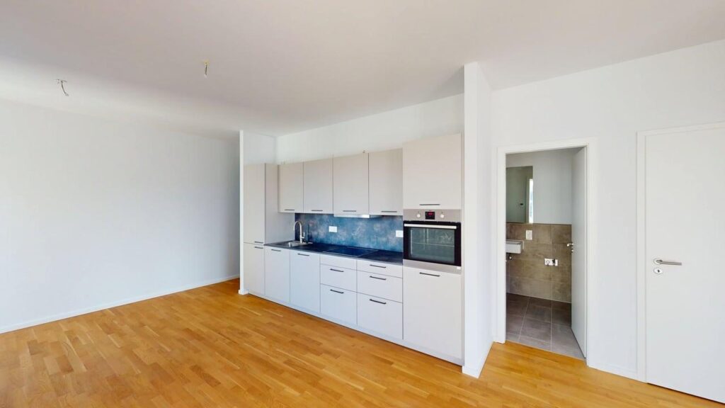 Die moderne Einbauküche ist bereits integriert, und der sehr große Wohnbereich bietet ausreichend Raum für individuelle Einrichtungsideen – vom gemütlichen Wohnzimmer bis zum Essbereich oder Home-Office. Zwei Balkone laden zu entspannten Stunden an der frischen Luft ein.