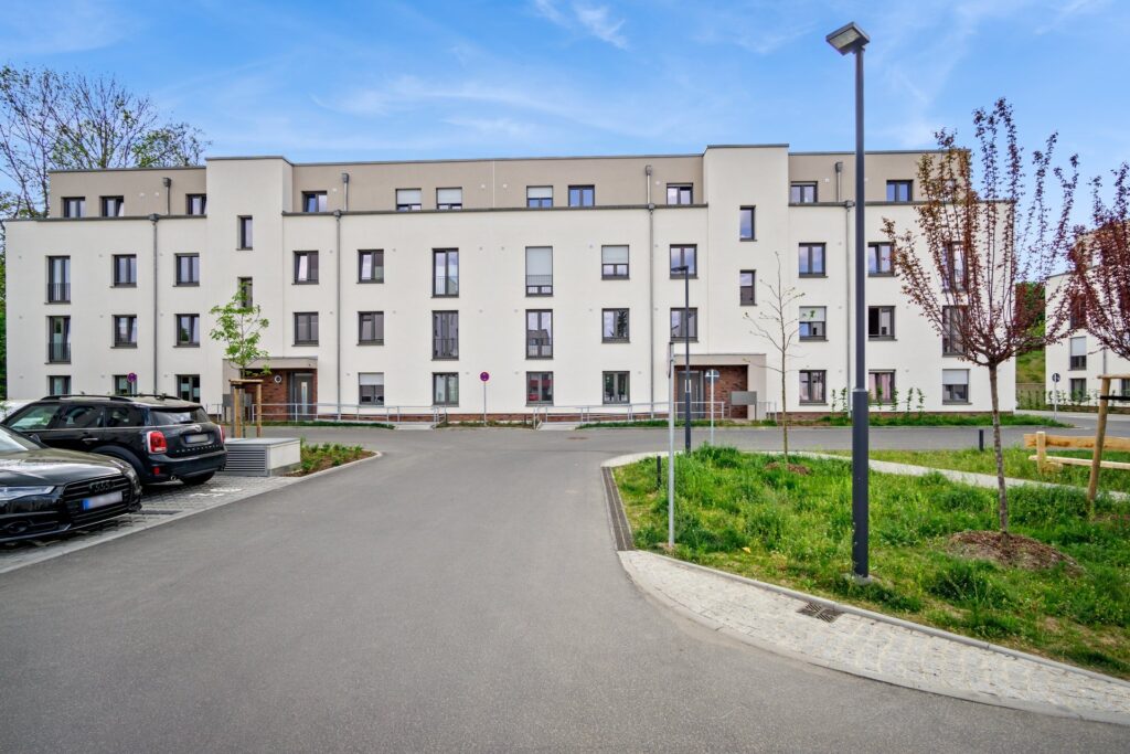 Auf einem großzügig begrünten Areal umfasst das Wohnensemble fünf verschiedene Häuser mit insgesamt 116 Wohneinheiten. Auch eine Tiefgarage mit PKW und Fahrradstellplätzen sowie PKW-Außenstellplätze sind vorhanden. Liebevoll gestaltete Außenanlagen mit Sitzgelegenheiten, Spielflächen und Spielgeräten garantieren eine hohe Lebensqualität.