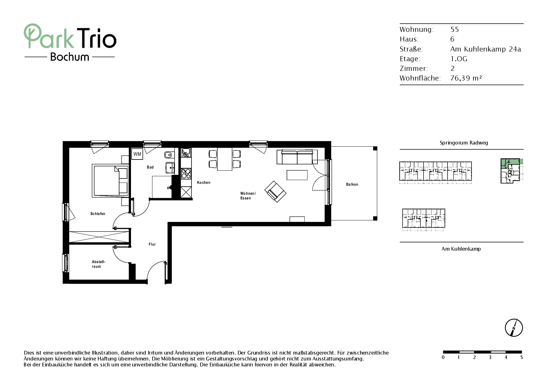Dank KfW-55-Effizienz, moderner Lüftung und optimalem Schallschutz genießen Sie höchsten Wohnkomfort. Außen- und Tiefgaragenstellplätze sorgen für bequeme Mobilität. Ausreichend Fahrradabstellmöglichkeiten befinden sich im Innenhof.