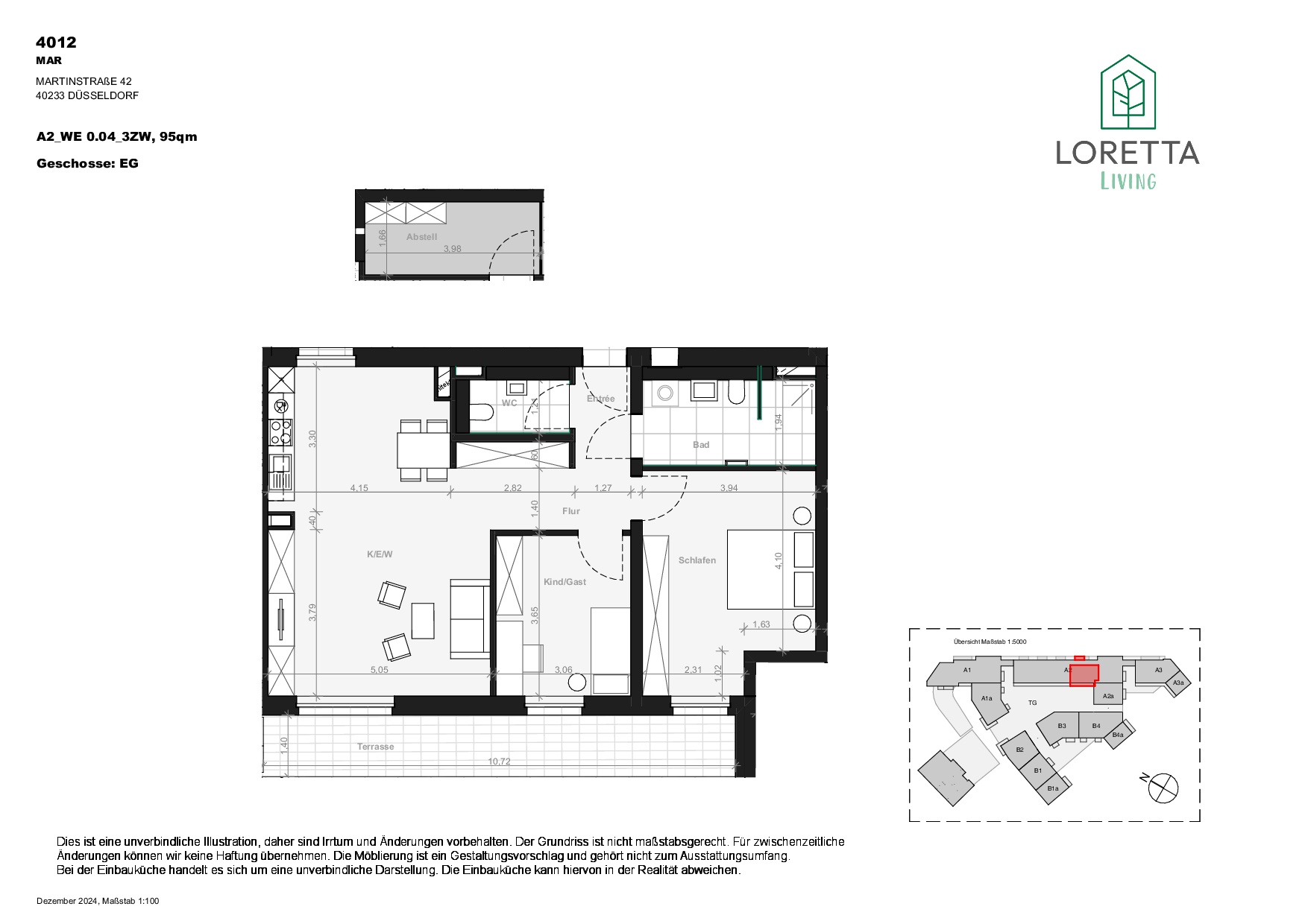 Willkommen bei Loretta Living – einem modernen Wohnensemble in zentraler Lage von Düsseldorf, das urbanes Lebensgefühl mit naturnahem Wohnen verbindet. Das Gebäudeensemble bestehend aus einem fünf- und einem viergeschossigen Baukörper verkörpert modernes, komfortables Wohnen und bietet eine vielfältige Auswahl an durchdachten Grundrissen – ideal für Singles, Paare und Familien. Jede Wohnung überzeugt durch helle, offene Räume, Fußbodenheizung, eine moderne Einbauküche sowie Fenster mit Dreifachverglasung und erhöhtem Schallschutz. Besondere Highlights sind die privaten Außenbereiche: Alle Einheiten verfügen über einen Balkon, eine Loggia oder eine Terrasse mit Blick auf begrünte Innenhöfe – ideal zum Entspannen. Dank Aufzügen, stufenlosem Zugang und durchdachtem Design ist Loretta Living für jede Lebensphase geeignet.