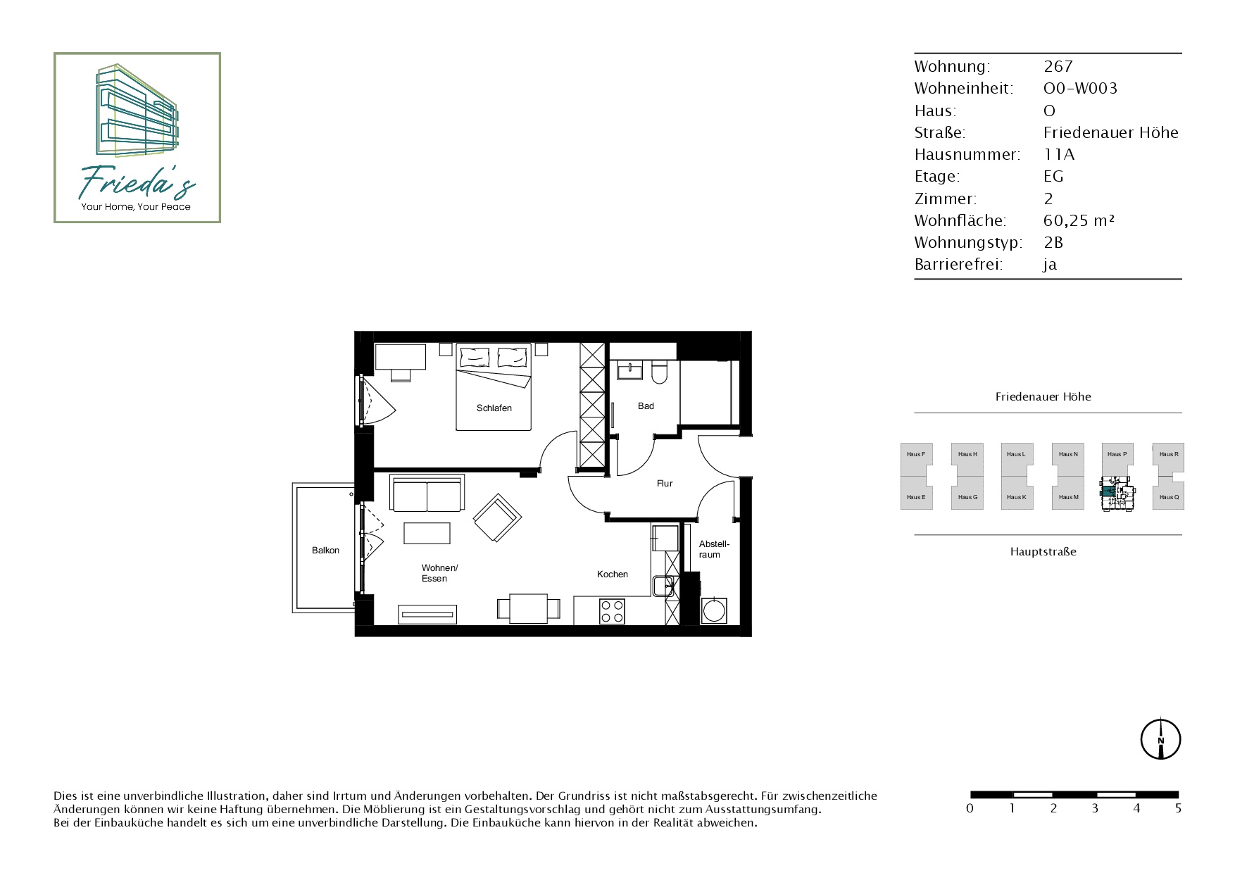 Mit dem FRIEDAS Berlin entsteht auf einem Areal von ca. 24.366 m2 ein modernes Wohnquartier. Der gesamte Neubau-Komplex in der Friedenauer Höhe umfasst sechs Gebäude mit insgesamt 396 Wohnungen, die in drei Bauabschnitten fertiggestellt werden. Im ersten Bauabschnitt entstehen 132 Wohnungen mit einem bis vier Zimmern, teilweise barrierefrei, sowie 69 TG-Stellplätze. Neben der Tiefgarage befinden sich im Untergeschoss auch Abstell-, Fahrrad-, Technik- und Müllräume sowie die Mieterkeller. Die moderne Architektur, bodentiefe Fenster und eine harmonische Farbgestaltung der Fassaden überzeugen ebenso wie die abwechslungsreich begrünten Außenanlagen. In Massivbaubauweise errichtet und erbaut gemäß den aktuell gültigen Bestimmungen der EnEV, erfüllen sämtliche Gebäude die Standards des GEG und „Effizienzhaus 55 EE“ sowie die Vorschriften des erhöhten Schallschutzes. Die Wärme- und Warmwasserversorgung sichert ein Blockheizkraftwerk. Die gärtnerische Gestaltung der Freiflächen umfasst Rasen und Pflanzbeete mit Stauden sowie Hecken, Sträucher und Kleingehölze. Die Abgrenzung der Erdgeschoss-Terrassen erfolgt ebenfalls durch Hecken. Ein Spielbereich für die Kleinsten mit Sandkasten und Spielgeräten wird ergänzt durch ebenerdige Spielflächen für Schach, Mühle oder Mensch-ärgere-dich-nicht.