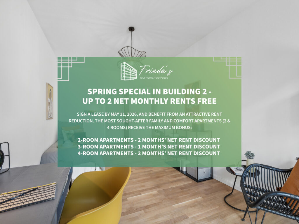 Bei den Bildern handelt es sich um unverbindliche Visualisierungen und Bilder der Musterwohnung. Gerne können Sie sich im Zuge einer Besichtigung selbst vom FRIEDA'S überzeugen.