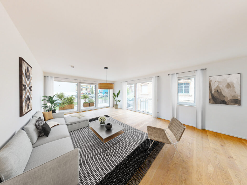In spektakulärer Wasserlage direkt am Saale-Ufer gelegen, bietet das umfangreiche Sanierungsvorhaben, das in zwei Bauabschnitten realisiert wird, nach Abschluss insgesamt 210 Mietwohnungen in elf Häusern. Die drei- bis sechsgeschossigen Gebäude erfüllen neben den Anforderungen an ein KfW-Effizienzhaus 55 (GEG) auch die Vorgaben für KfW-Denkmalgebäuden und bieten eine intelligente Be- und Entlüftungstechnik.Der Mix aus 1- bis 6-Zimmer-Wohnungen mit einer durchschnittlichen Größe von 33 bis 173 m² stellt ein attraktives Angebot für alle Bedürfnisse bereit – ob für Singles, Senioren, Paare oder Familien. Viele Wohnungen verfügen zudem über einen Balkon oder eine Terrasse. Die Tiefgarage mit 250 Fahrrad- und 137 PKW-Stellplätzen, davon einige als E-Ladestellplätze konzipiert sind, bietet Platz für Autos, Fahrräder und zusätzliche Abstellräume.Der begrünte Innenhof des FREYBERG‘S bietet nicht nur Möglichkeiten für ein nachbarschaftliches Miteinander im Freien, sondern auch einen Spielbereich für Kinder.