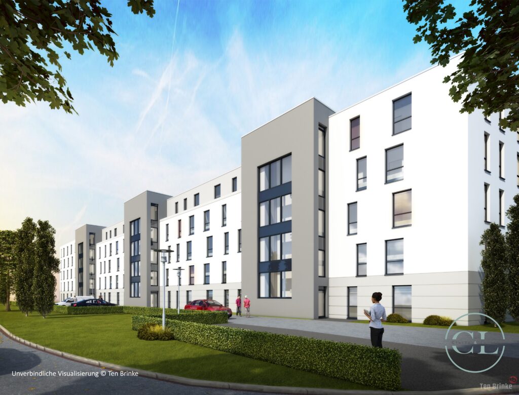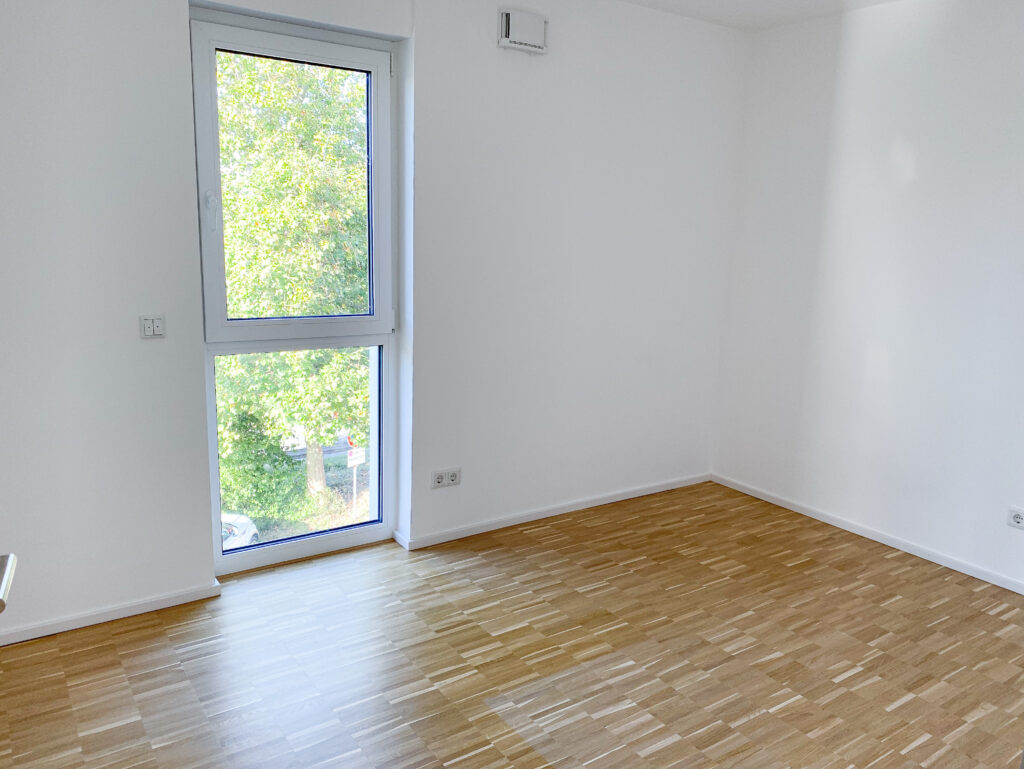 Eine exklusiv geschnittene 3-Zimmer-Wohnung auf einer Fläche von 88 Quadratmeter präsentiert sich mit zwei Schlafzimmern, einem Duschbad, einem Flur mit kleiner Abstellnische und einem großzügigen Koch-, Ess- und Wohnbereich. Ein zusätzlicher Abstellraum bietet platz für den Waschmaschinen-Anschluss.