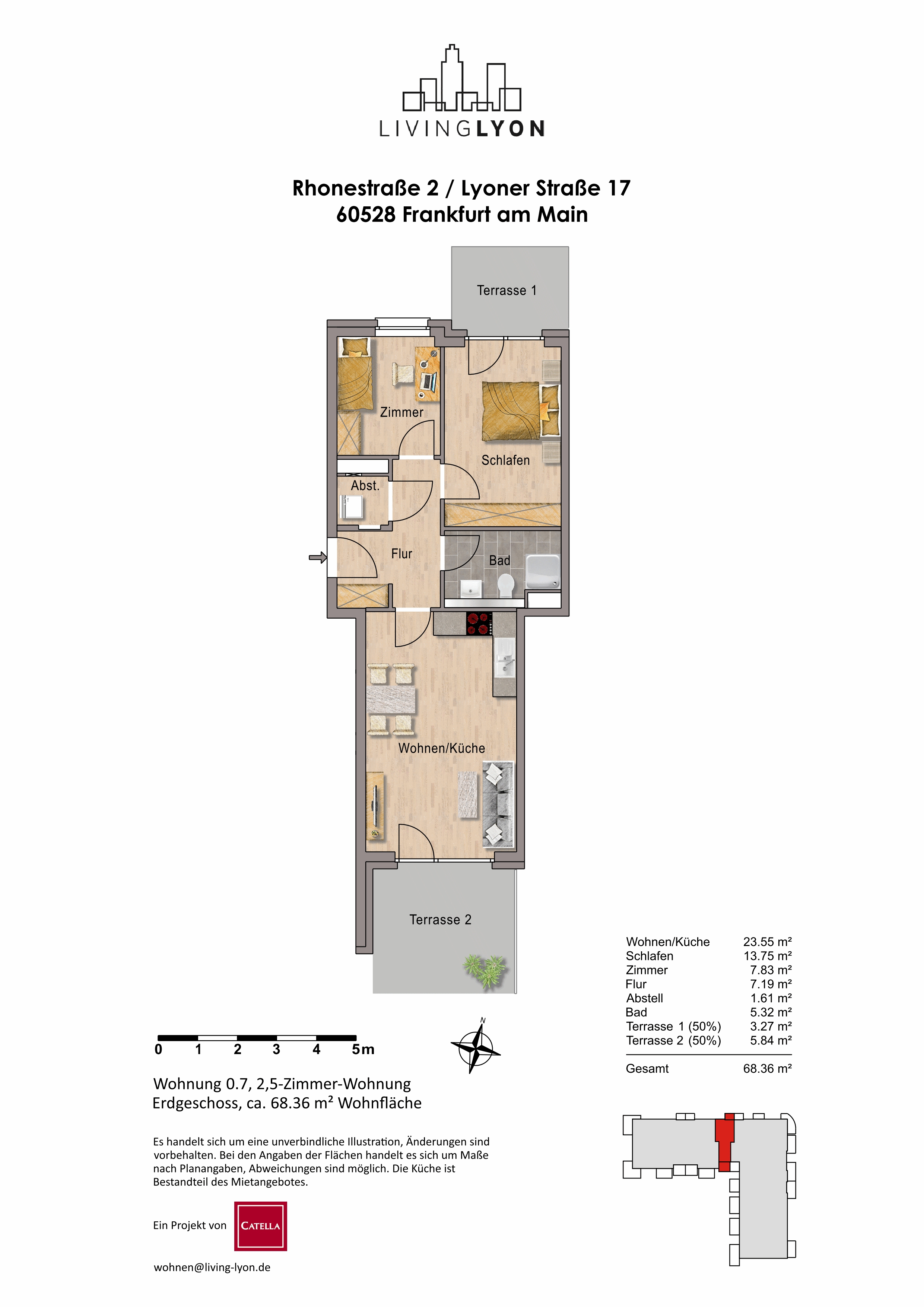 Die hier angebotene 2-Zimmer-Wohnung befindet sich im Gebäudeensemble Living Lyon.