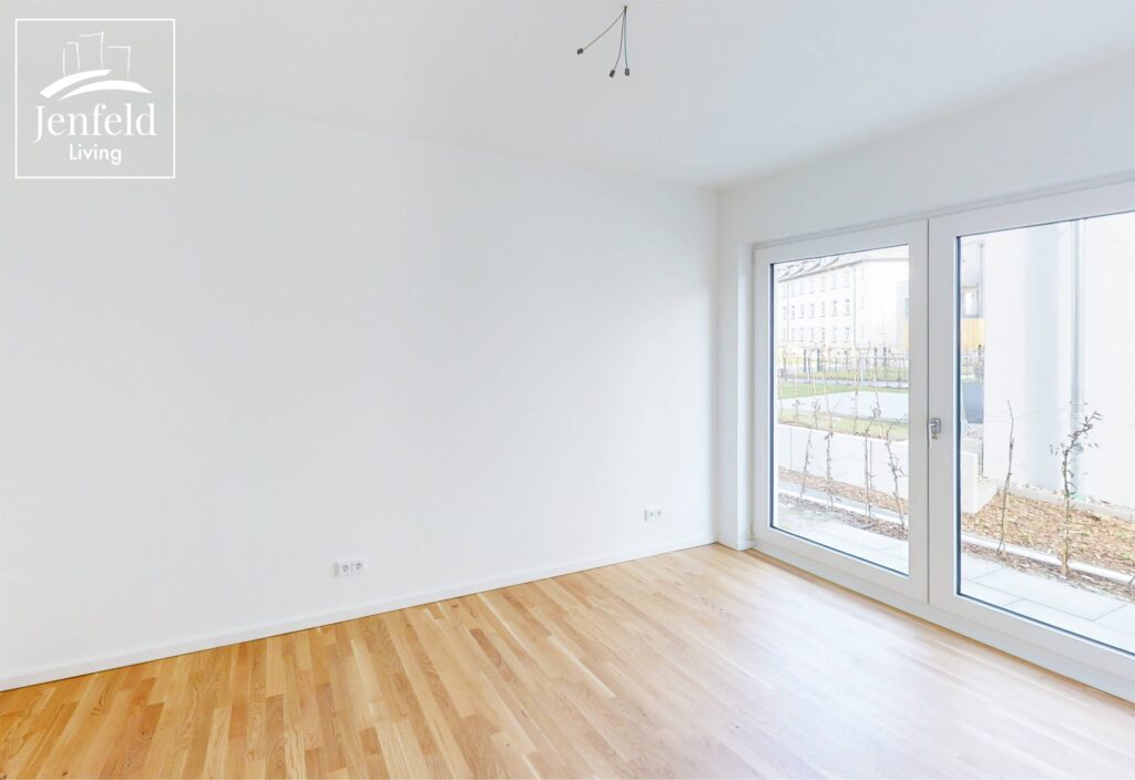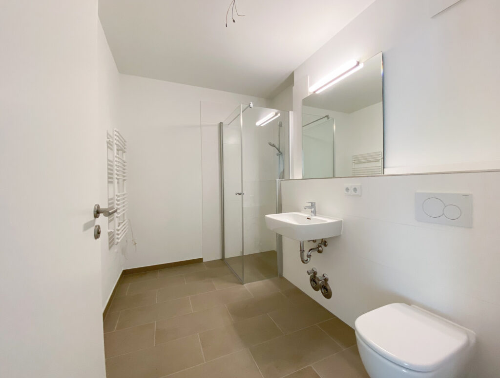 In den Wohnbereichen und Fluren gehen glattweiße Wände mit dem Echtholzparkett eine stilvolle Verbindung ein. Die Küchen sind mit Designvinylboden in Eichenoptik ausgestattet, um eine perfekte Kombination zu bilden. Eine über Fernwärme betriebene Fußbodenheizung sorgt im Winter für wohlige Wärme – und im Sommer mittels Wärmeabführung für angenehm kühle Räume. Die Bäder und WCs erfreuen dank großformatiger Fliesen und moderner Einbauten mit einem puristisch edlen Look. Und natürlich ist jede Wohnung bereits mit einer schicken Einbauküche versehen.