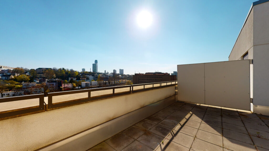 Die Wohnung verfügt über einen Flur, ein geräumiges Schlafzimmer mit Zugang zur Dachterrasse und ein Duschbad. Des Weiteren bietet ein Abstellraum mit Waschmaschienenanschluss zusätzlichen Stauraum. Auch über den hellen Wohn-, Ess-, Kochbereich mit moderner Einbauküche gelangt man auch auf die Dachterrasse sowie einen kleinen Balkon zum Innenhof.