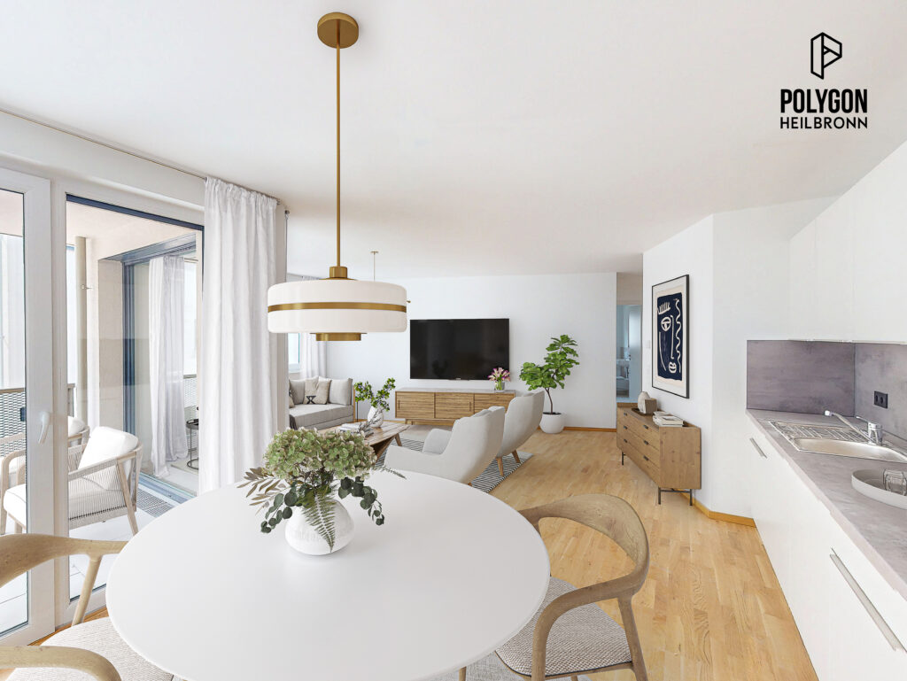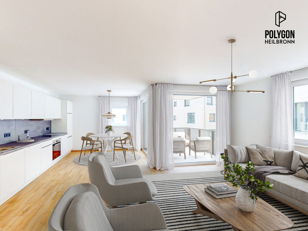 Das Wohnquartier POLYGON in der Happelstraße in Heilbronn bietet mit seinen modernen Neubauwohnungen ein attraktives Zuhause für Singles, Paare und Familien. In insgesamt fünf stilvoll gestalteten Mehrfamilienhäusern entstehen 89 lichtdurchflutete Wohnungen von 1,5 bis 4 Zimmern – viele mit Balkon, Loggia oder Terrasse und teilweise eigenen Gartenanteilen im Erdgeschoss. Die durchdachten Grundrisse schaffen Raum für individuelles Wohnen und einen entspannten Familienalltag.
