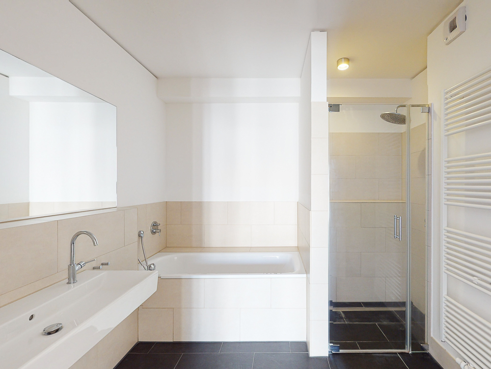 In der Wohnung erwartet Sie ein Flur mit Garderobe, ein Wohn- und Essbereich mit moderner Einbauküche, drei Schlafzimmer sowie ein Bad mit bodengleicher Dusche und Badewanne. Der Balkon kann vom Wohnbereich aus betreten werden. Ein zweites Duschbad rundet das Gesamtbild ab. Ein Abstellraum mit Waschmaschinenanschluss bietet zusätzlichen Stauraum.