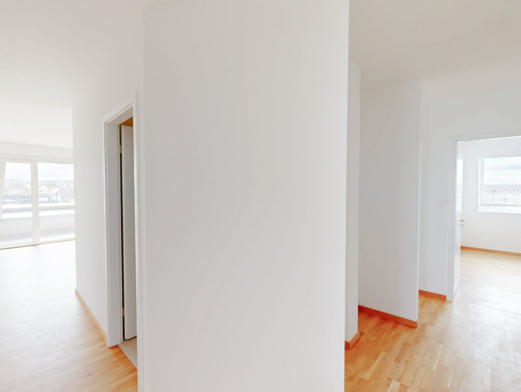 Diese exklusive 4-Zimmer-Penthousewohnung mit einer Wohnfläche von ca. 147,22 m² ist ein ideales Zuhause für Familien, die Wert auf Komfort, ausreichend Platz und das "gewisse Etwas" legen. Von dem einladenden Flur gelangen Sie in alle Räume. Der offene Wohn- und Essbereich mit angrenzender Einbauküche lädt zu ausgiebigen Kochstunden und geselligem Zusammenleben ein. Von hier aus gelangen Sie auf die großzügige Dachterrasse, von der Sie den Blick in die Ferne genießen können. Die Dachterrasse eignet sich perfekt als Rückzugsort oder Treffpunkt für entspannte Abende im Freien. Die zwei modernen Bäder und das zusätzliche Gäste-WC bieten Komfort und Flexibilität für mehrere Bewohner und Gäste. Ein großzügiges Hauptschlafzimmer und zwei weitere flexibel nutzbare Räume bieten Platz für individuelle Bedürfnisse. Die durchdachte Raumaufteilung macht diese Wohnung zu einem idealen Wohlfühlort für Familien.