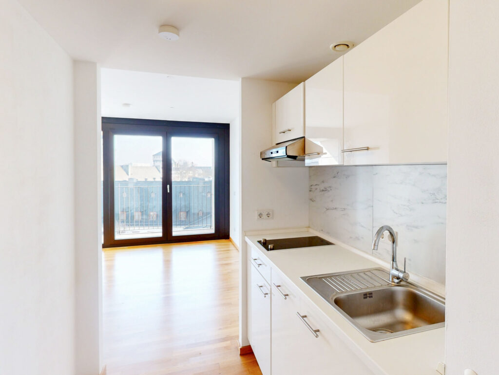 Singles und Pendler aufgepasst! Auf rund 26 m² bietet diese Wohnung einen modernen und zugleich gemütlichen Rückzugsort im Herzen der Frankfurter Altstadt. Sie liegt in einem architektonisch ansprechenden Wohn- und Geschäftshaus und besticht mit einem tollen Ausblick auf die lebendige, urbane Nachbarschaft. Das funktional geschnittene Apartment überzeugt mit einem hellen Wohnbereich, der nahtlos in die offene Küche übergeht. Das modern ausgestattete Badezimmer ist mit einer Dusche versehen und die Loggia lädt zu entspannten Stunden im Freien ein – ob beim Frühstück am Morgen oder beim gemütlichen Feierabend.