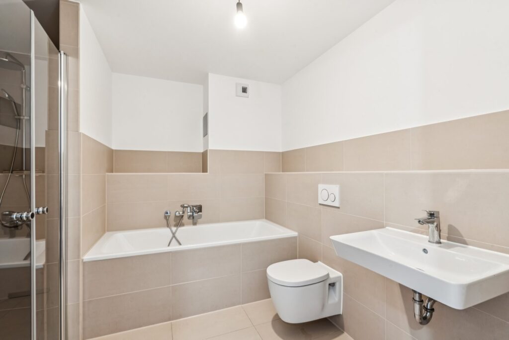 • bodengleiche Duschen und / oder Badewannen sowie hochwertige Markeneinbauten wie z.B. Handtuchheizkörper und Armaturen