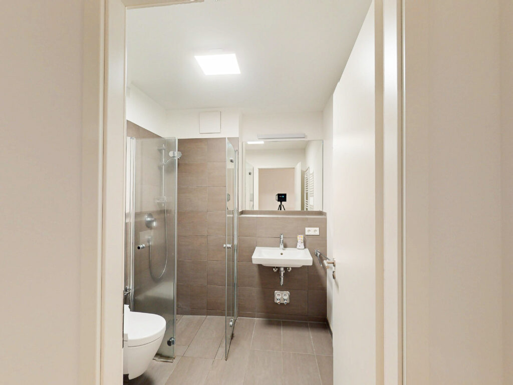 Bei den Bildern handelt es sich um eine Musterwohnung im Projekt. Gerne können Sie sich im Zuge einer Besichtigung von der Wohnung selbst überzeugen und den genauen Schnitt vom Grundriss entnehmen.