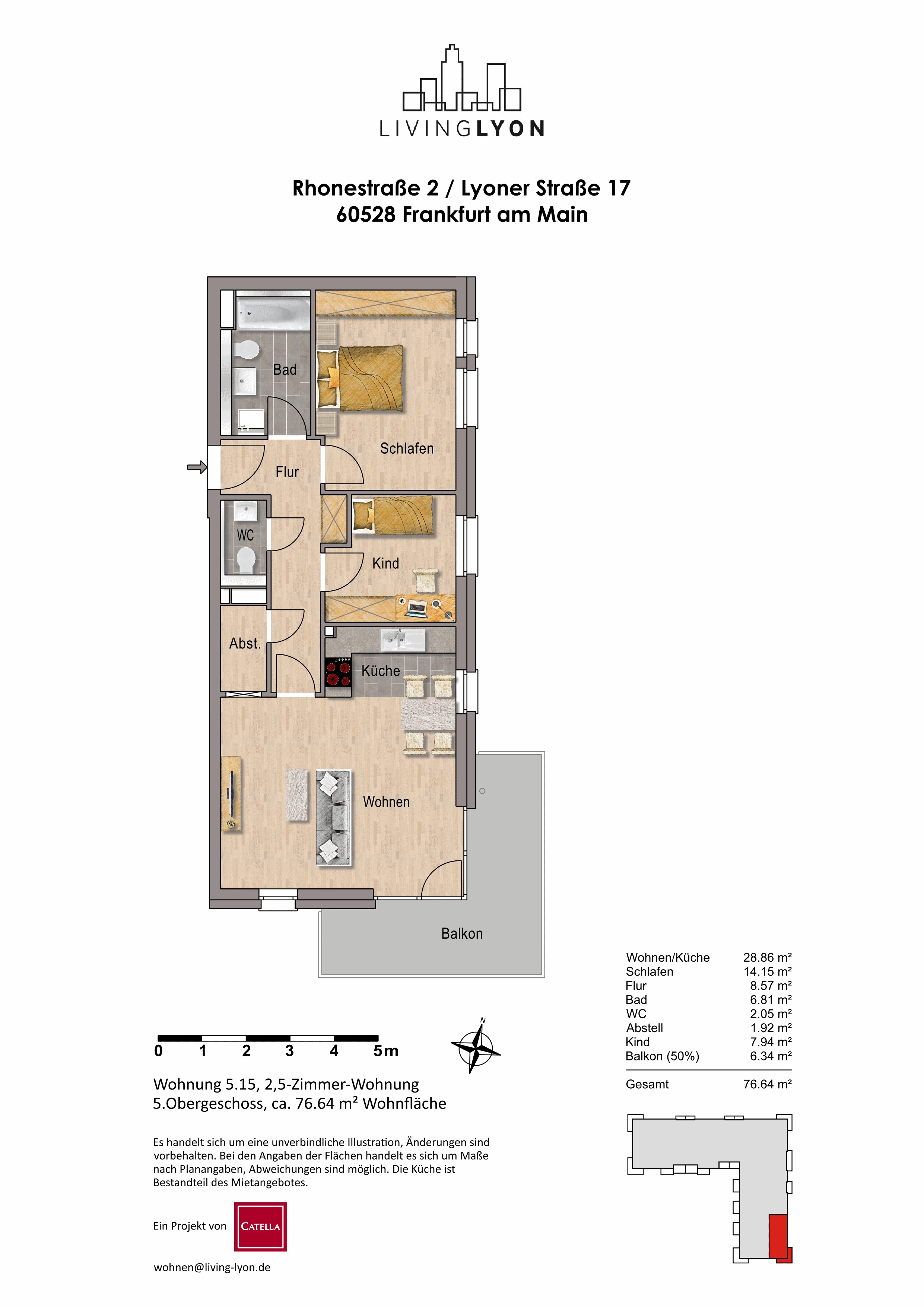 Die hier angebotene 3-Zimmer-Wohnung befindet sich im Gebäudeensemble Living Lyon.