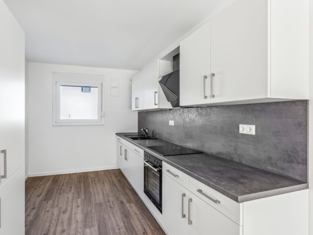 • Moderne, vollausgestattete Einbauküchen mit Geräten der Marke Oranier (Kühlschrank mit Gefrierkombination, Geschirrspüler, Herd/Backofen mit Dunstabzugshaube)