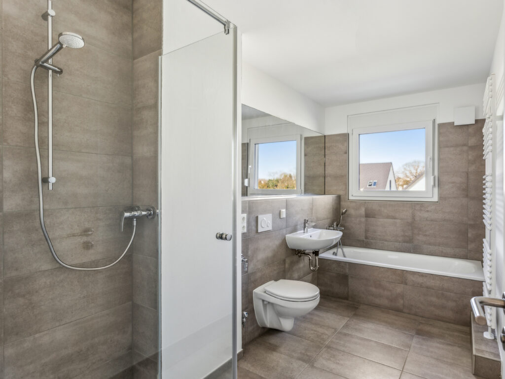 • Großformatige Boden- und Wandfliesen in Bädern/WC