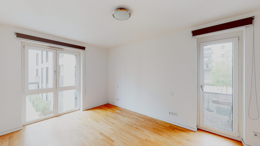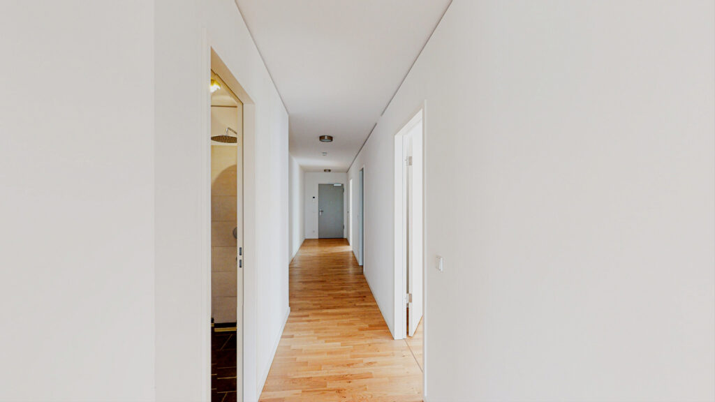 Alle Wohnräume sind mit Echtholzparkett ausgestattet und verfügen über Innenjalousien. In den Bädern und dem Hauswirtschaftsraum sind Steinfliesen vorzufinden. Die Beheizung der Wohnung erfolgt über eine Fußbodenheizung. Weiterhin kann ein Tiefgaragenstellplatz angemietet werden.