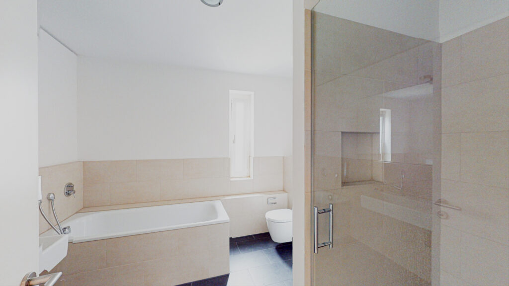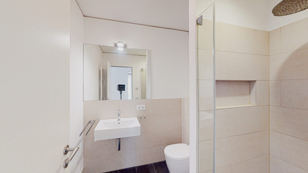 In der Wohnung erwartet Sie ein Flur mit Garderobe, ein Wohn- und Essbereich mit moderner Einbauküche, drei Schlafzimmer sowie ein Bad mit bodengleicher Dusche und Badewanne. Der Balkon kann vom Wohnbereich aus betreten werden. Ein zweites Duschbad rundet das Gesamtbild ab. Ein Abstellraum mit Waschmaschinenanschluss bietet zusätzlichen Stauraum.