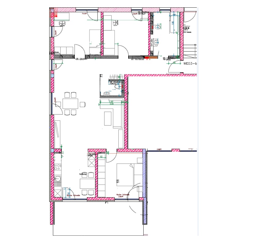 Die hier angebotene 4-Zimmer-Wohnung verfügt über einen offenen Wohnbereich, einen offenen Ess- und Kochbereich (ohne EBK), 3 Schlafzimmer, zwei Badezimmer (mit WMA), einen Flur und einen Balkon.