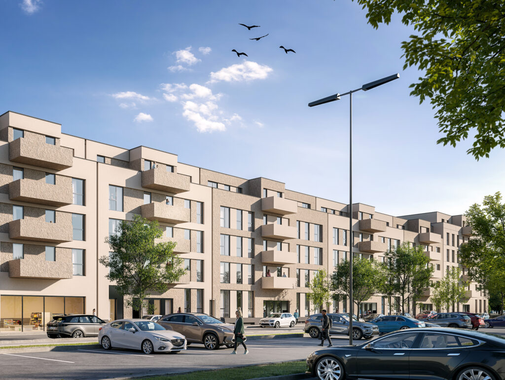 Die Wohnung ist Teil des Wohnprojekts HEINRICH CARRÉ und liegt im Düsseldorfer Stadtteil Rath.