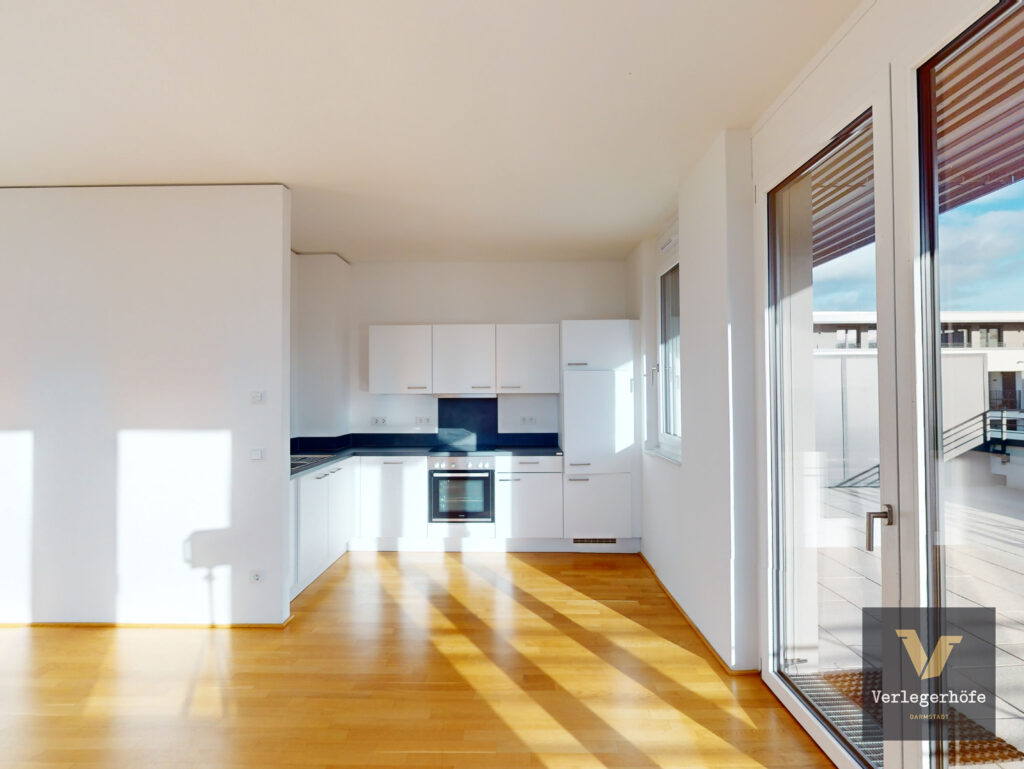 Die hier angebotene 4-Zimmer-Wohnung verfügt über einen kombinierten Wohn- und Essbereich mit offener Küche (inkl. Einbauküche) mit angrenzendem Abstellraum (inkl. Waschmaschinenanschluss), drei weiteren Zimmern, einem modernen Wannenbad und einem Gäste-WC. Die vom Wohnbereich aus begehbare und großzügig gestaltete Dachterrasse mit Süd-West-Ausrichtung und die von zwei weiteren Zimmern aus begehbare Loggia laden zum Verweilen ein.