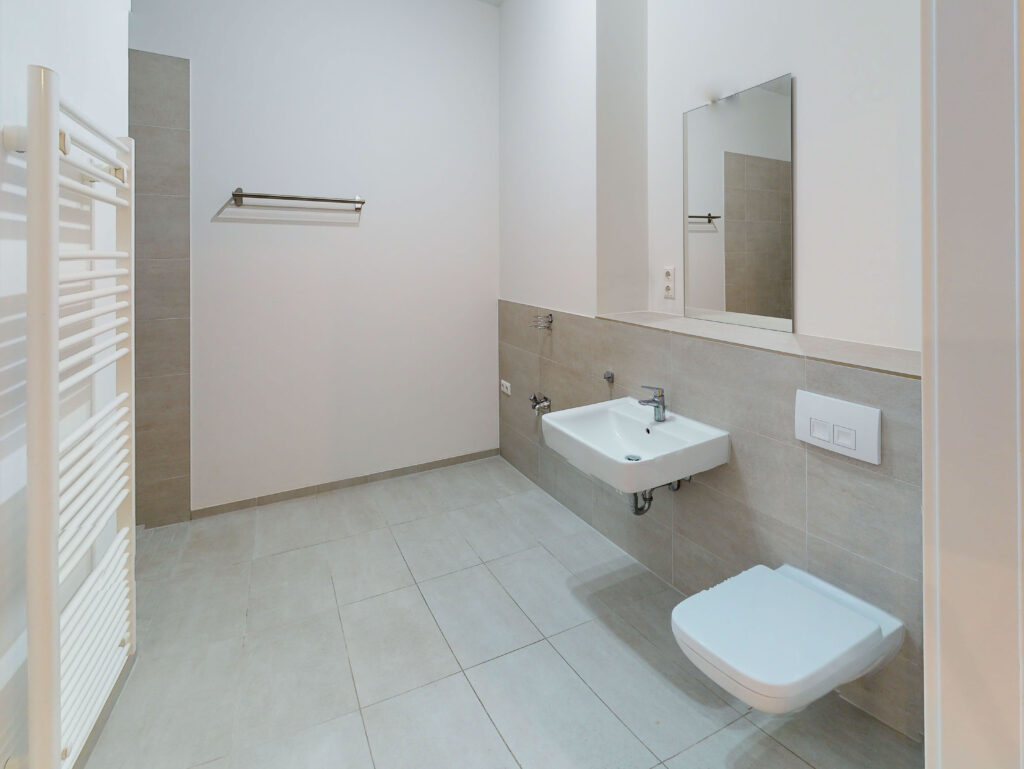 Bilder einer Musterwohnung im gleichen Objekt. Der Zuschnitt der angebotenen Wohnung