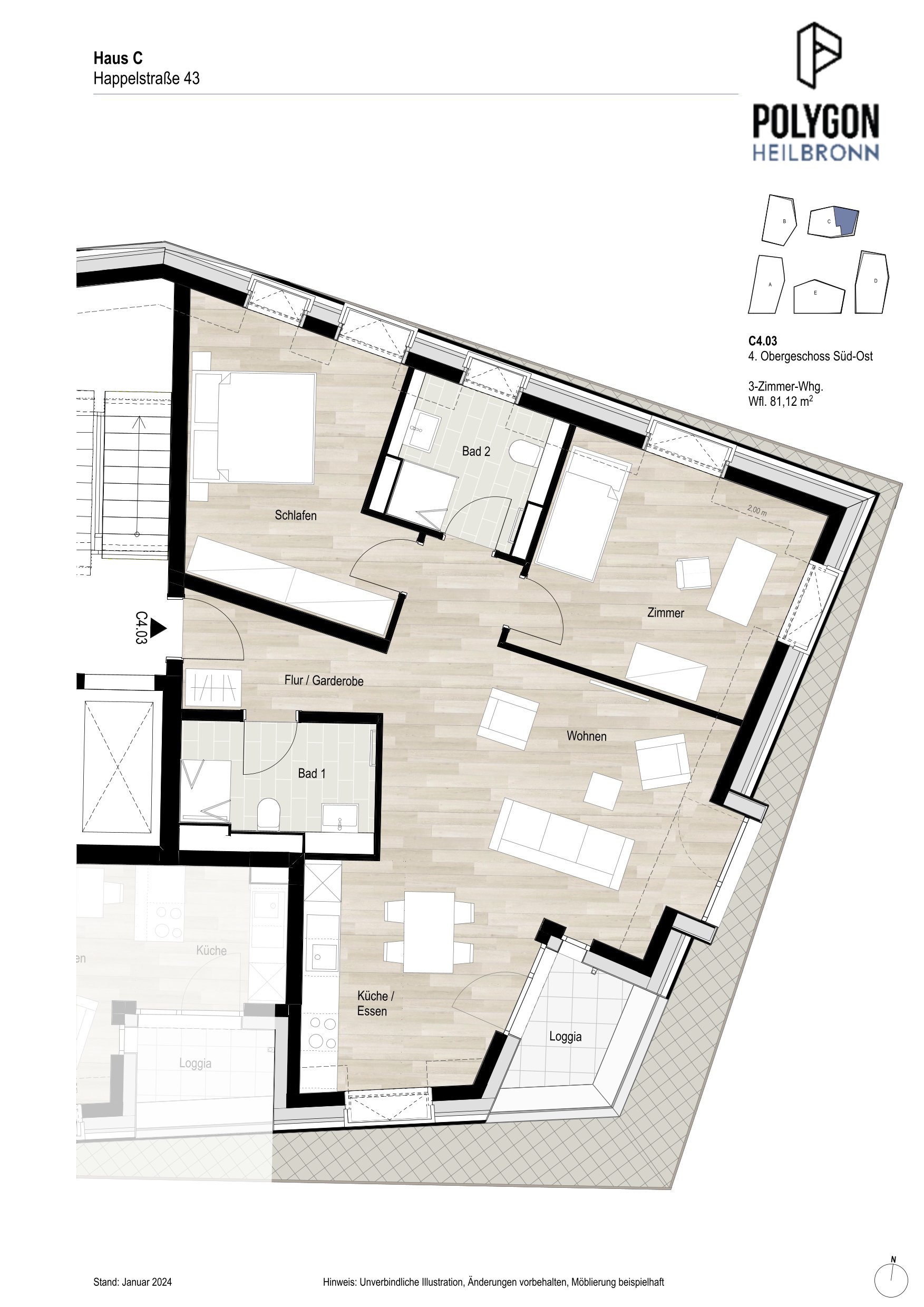 Das Wohnquartier POLYGON in der Happelstraße in Heilbronn bietet mit seinen modernen Neubauwohnungen ein attraktives Zuhause für Singles, Paare und Familien. In insgesamt fünf stilvoll gestalteten Mehrfamilienhäusern entstehen 89 lichtdurchflutete Wohnungen von 1,5 bis 4 Zimmern – viele mit Balkon, Loggia oder Terrasse und teilweise eigenen Gartenanteilen im Erdgeschoss. Die durchdachten Grundrisse schaffen Raum für individuelles Wohnen und einen entspannten Familienalltag.