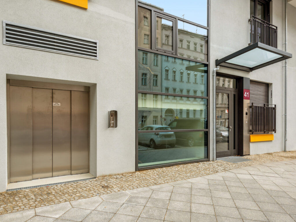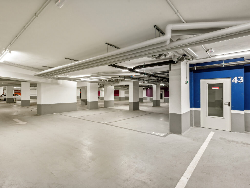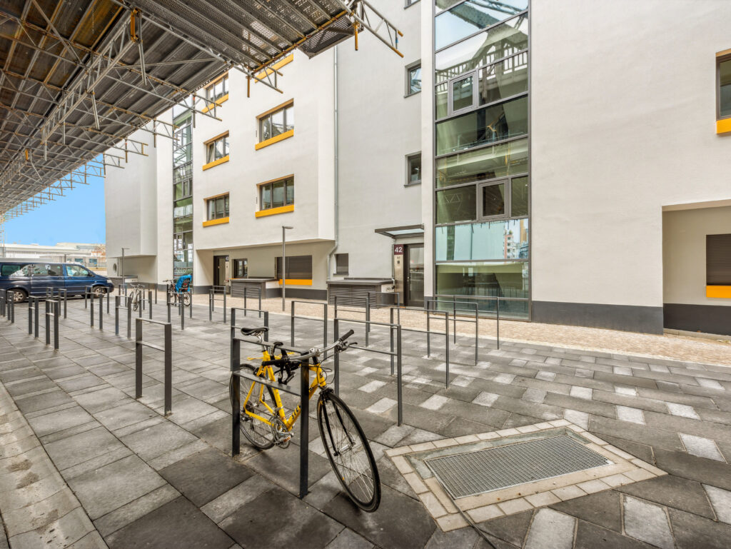 Für die Mieter stehen insgesamt 41 Pkw-Stellplätze, die teilweise mit einer E-Ladestation sowie Kraftradstellplätzen ausgestattet sind, sowie ein Fahrradraum in der Tiefgarage zur Verfügung. Weitere Fahrradstellplätze befinden sich im Außenbereich, der als begrünte Anlage mit Spielflächen, Geräten und Sitzmöglichkeiten gestaltet ist.