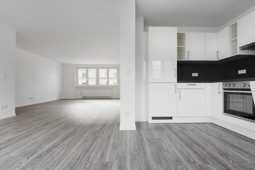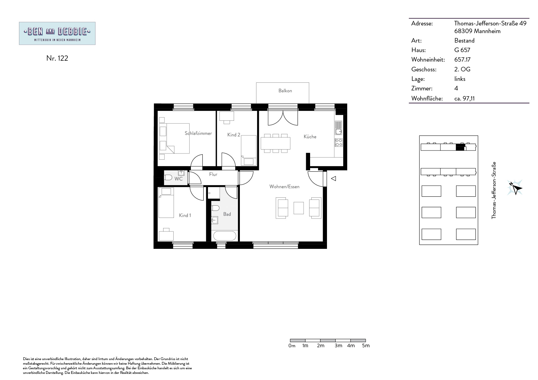 Die hier angebotene 4-Zimmer-Wohnung befindet sich im sanierten Bestandsgebäude des Ben & Debbie im neuen Stadtviertel Franklin. Die Wohnung verfügt über großzügige 97 Quadratmeter mit einem offenen Wohn-, Koch- und Essbereich.