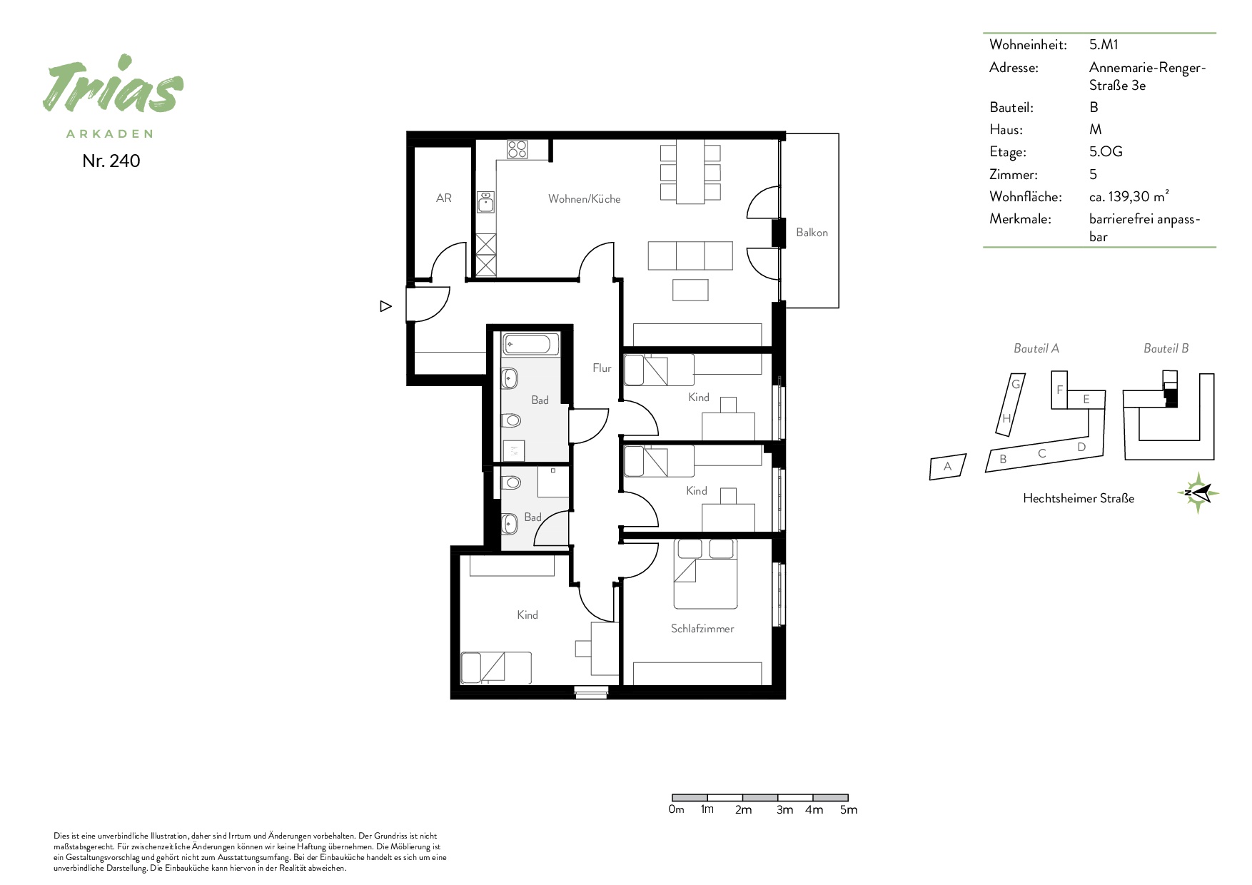 Das Objekt besteht aus insgesamt 242 Wohnungen in mehreren Einzelgebäuden, mit jeweils fünf Geschossen. Diese sind wiederum über Aufzüge erschlossen.
