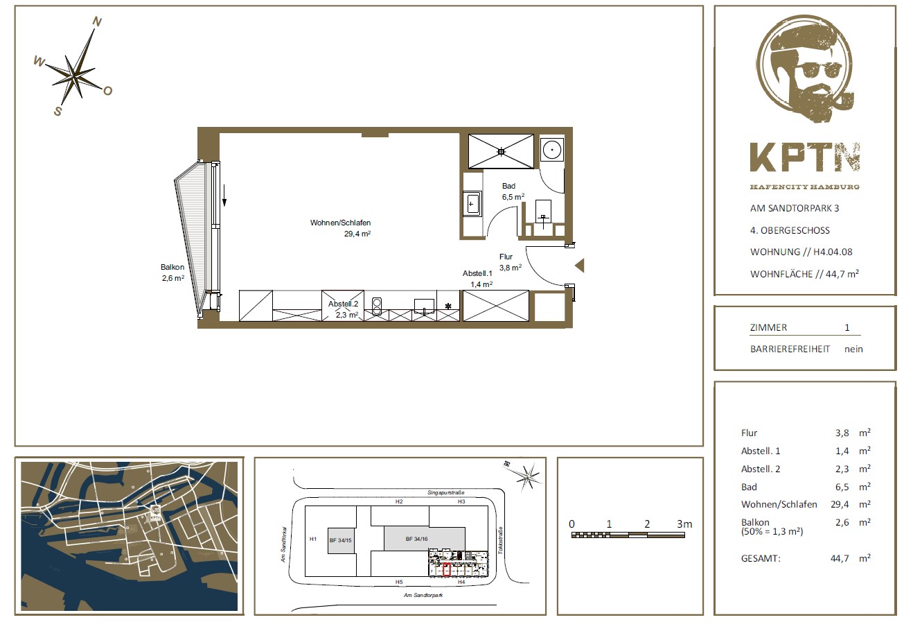 Das Neubauensemble KPTN bietet anspruchsvollen Wohnraum im zukünftigen Lebensmittelpunkt der Metropole Hamburg. Das Quartier besteht aus insgesamt fünf Gebäuden, die eine Gesamtfläche von rund 33.000 Quadratmetern bieten. Zwischen den Gebäudekomplexen liegt eine öffentliche Piazza als Passage zwischen der Straße „Am Sandtorpark“ und der „Singapurstraße“.
