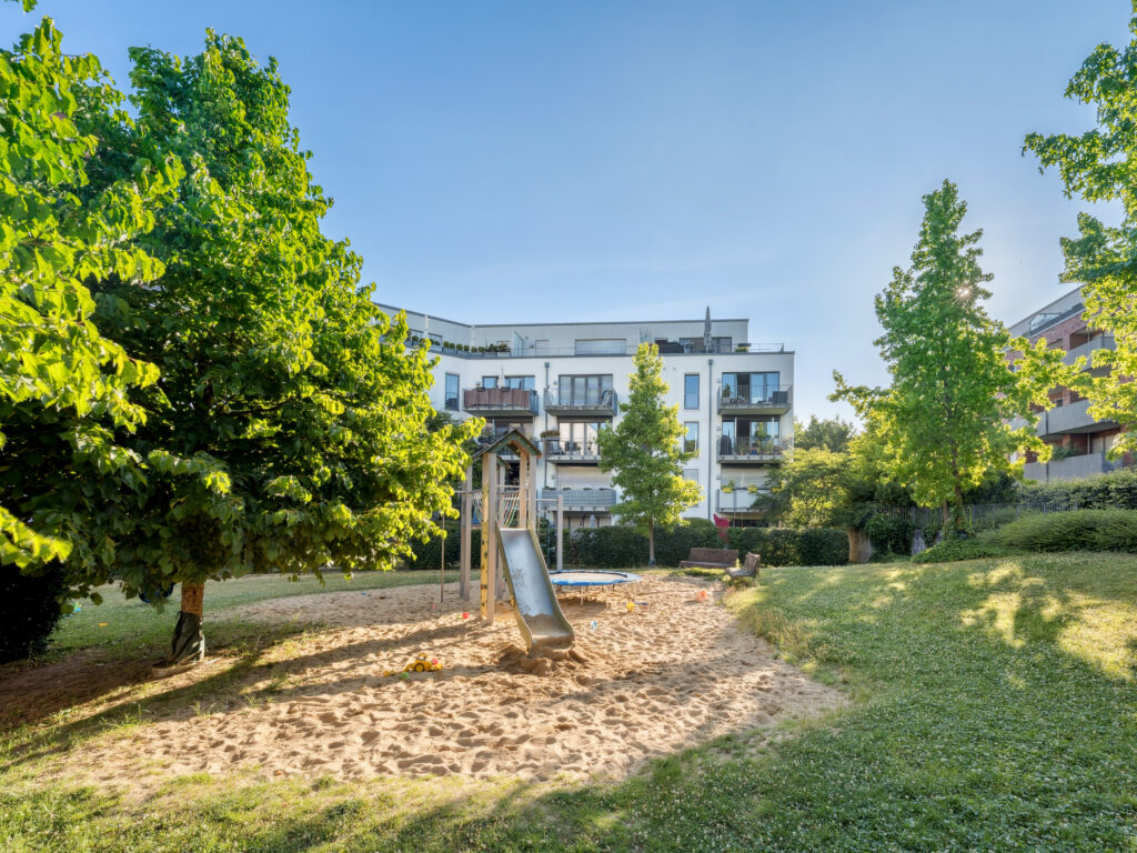 Einkaufen, Freizeit, Bildung – alles in unmittelbarer Nähe. Supermärkte, Bäckereien und Apotheken sind bequem erreichbar. Familien profitieren von Kitas und Schulen im direkten Umfeld. Zudem lädt die Umgebung mit Parks, Spielplätzen und Sportmöglichkeiten zum Aktivsein und Entspannen ein.