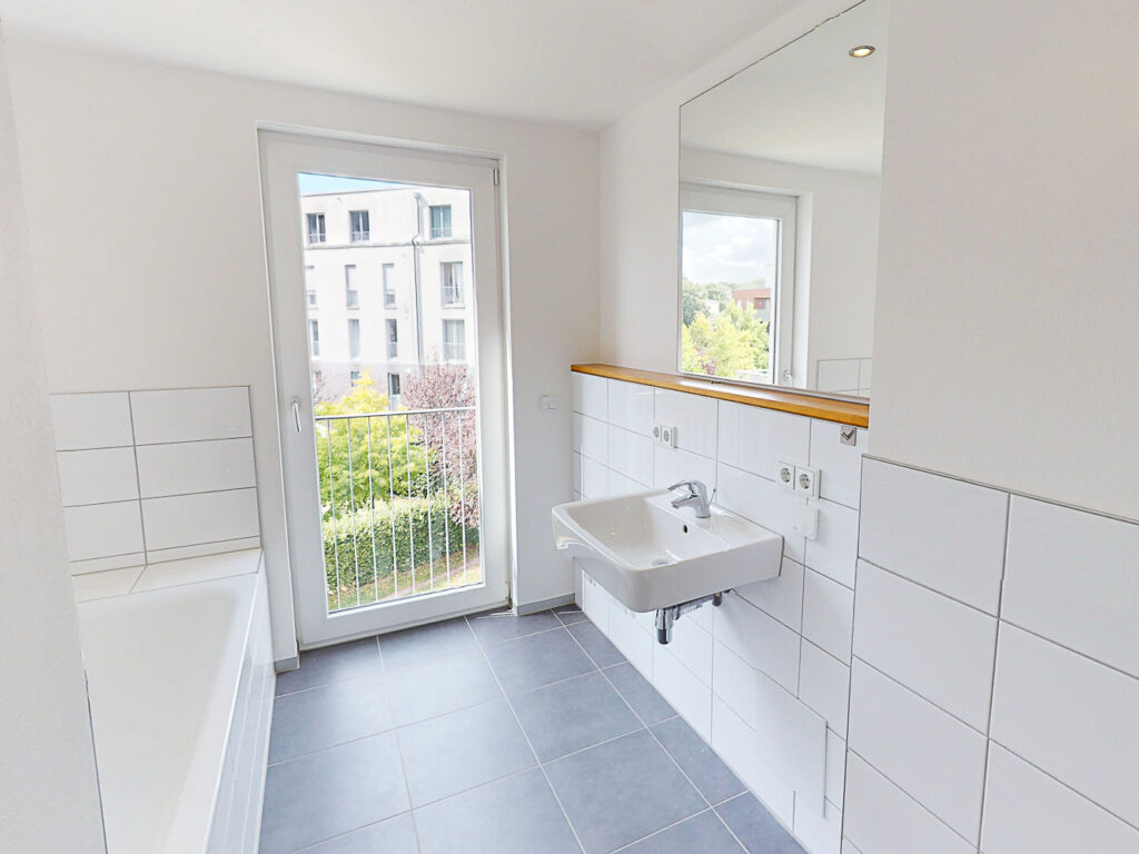 Bei den Bildern handelt es sich um eine Beispielwohnung im Objekt. Den genauen Schnitt können Sie dem Grundriss entnehmen.